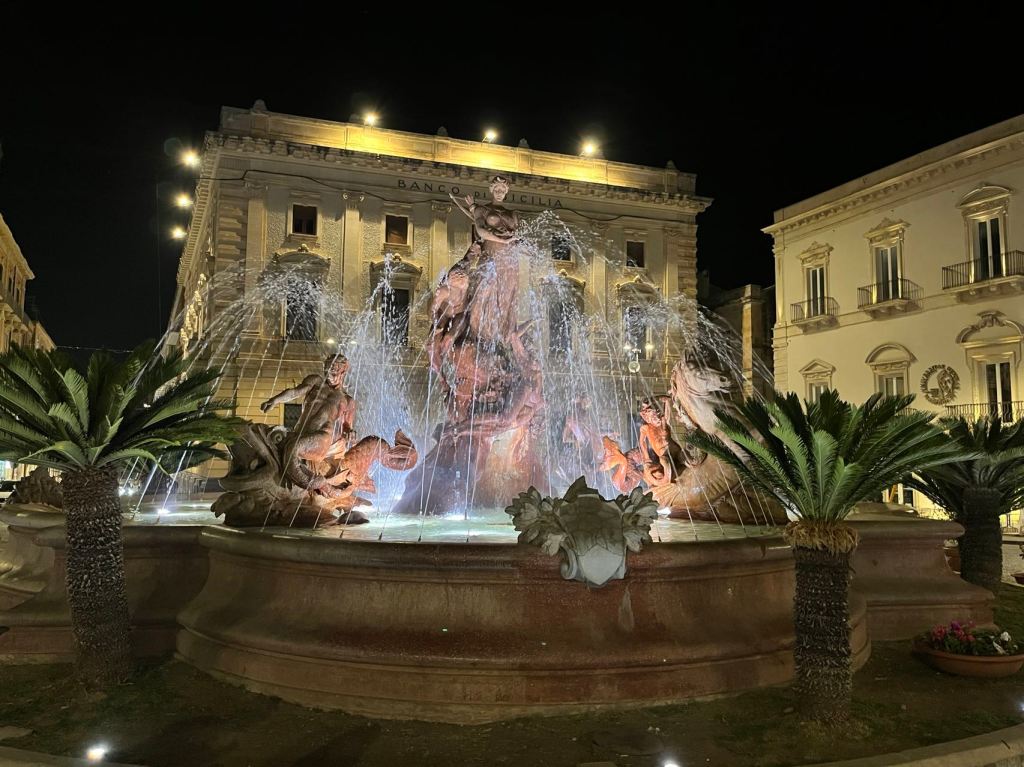 Syracuse was once the biggest city in the ancient Greek world. There is an Apollo Temple at the town center, now a ruin. There is also an ancient Greek amphitheatre and an ancient Roman arena in the north side of the city. A fortress, now a museum, is guarding the city at the southern tip. The town square in front of the basilica is most impressive. It was converted from a Greek temple. The Doric column colonnade was turned into the church wall but parts of the columns were still exposed. The Baroque facade of the basilica is one of the signature works of that era. The Baroque style Fountain of Diana in front of a downtown square is also representative of the flamboyant Baroque style. Take a stroll there after dark and you’ll be dazzled by the light and water show.