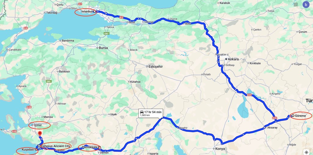 For our international flights, we chose an open-jaw route, eliminating redundant stops to minimize the travel time. We arrived in Istanbul and departed Turkey from Izmir Airport. For the domestic portion of the journey, we traveled by air and land. We flew from Istanbul to Cappadocia, then drove the rest of the way, to Pamukkale, then to Kusadasi, and finally to Izmir Airport. The transportation was smooth and uneventful-every traveler’s dream.