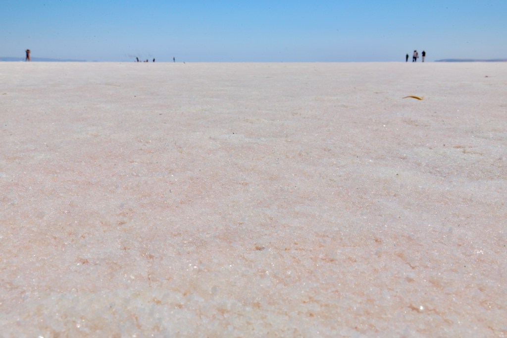 Two-and-half hours of driving later, we saw a bright white-pink-ish strip on the horizon like a mirage – the salt lake! But that was the highest point of the day. When we got there, we found not a drop of water. The lake is enormous. We walked 300 feet into the lake bed. It was bone dry, nothing but salt. The next 10 miles, 20 miles, would be the exact same. I pulled out my phone and started to search for Tuz Golu. The lake has been dry for a few years, the internet says.