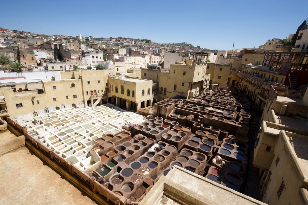 A requisite attraction of Fez was the tannery, which felt like a small village surrounding a central courtyard of hundreds dyeing pools. Streams of donkeys shipped loads of raw hides to the tannery everyday. The hides got processed and turned into colorful leather goods- bags, luggages, and clothes. They still used a natural chemical compound to cure raw hides: bird droppings. Not good for your nose, but it’s good for the environment.
