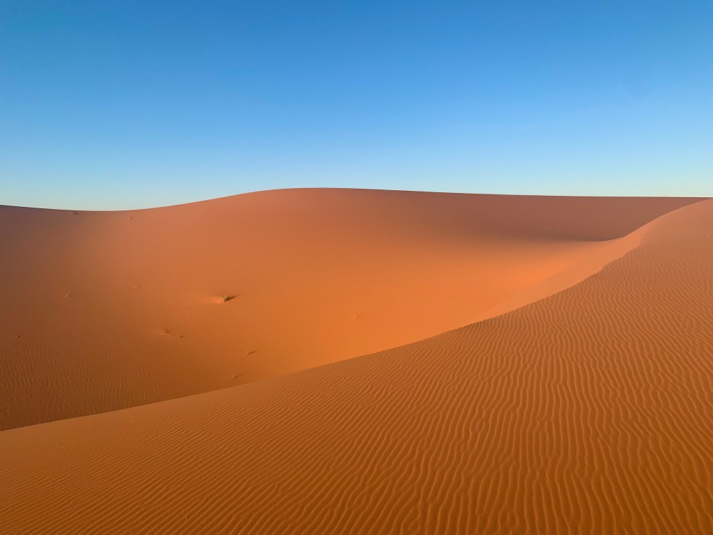 My mind was enveloped by sand. On a macro scale, I’m no different from a grain of sand. Sands on the dunes are silicon-based; we humans are carbon-based. Carbon-based humans are developing silicon-based AI chips. AI is replacing humans at an accelerating pace. Silicon-based intelligence is taking over carbon-base intelligence. What a circle! But I digress.